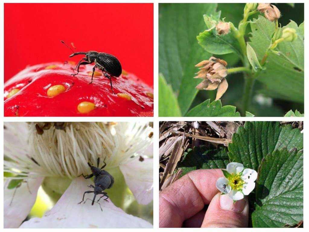 Малина, земляника садовая (клубника, виктория) цвели обильно, но ягод мало почему? Одна из причин возможен вредитель - Малино-земляничный долгоносик-цветоед.