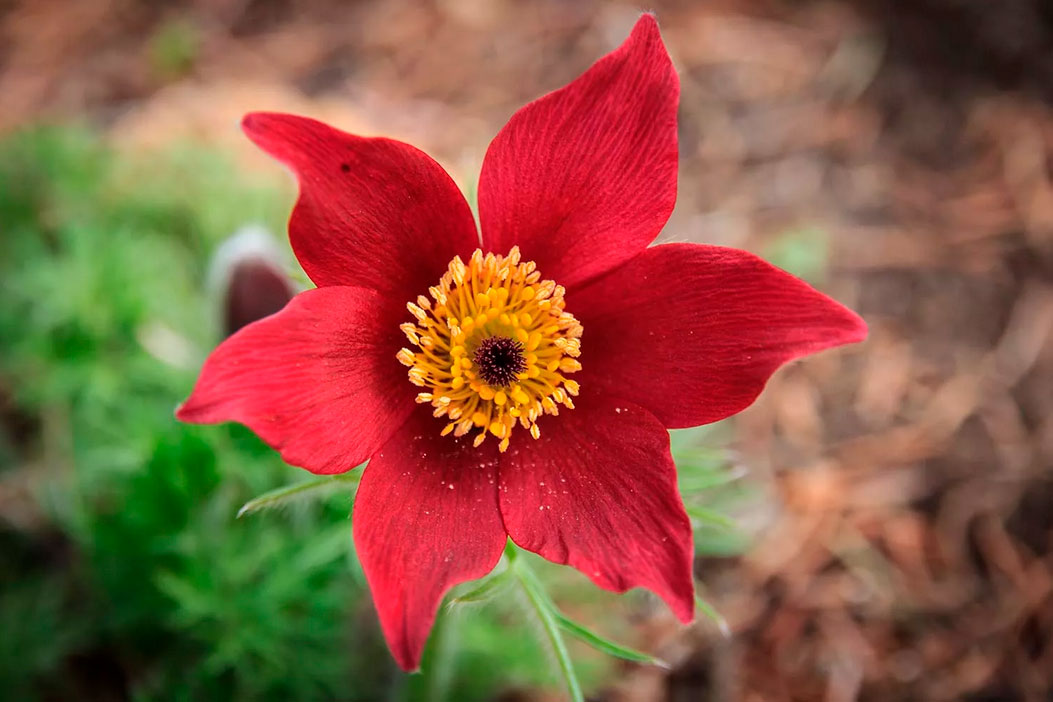 Лепестки красного цвета, тычинки желтые. Прострел обычно плохо приживается при пересадке. Поэтому он продается с закрытой корневой системой. Высаживают сон-траву в рокариях, в хорошо дренированную известковую почву. Растение устойчиво к морозу, пригодно к выращиванию почти по всей территории России.