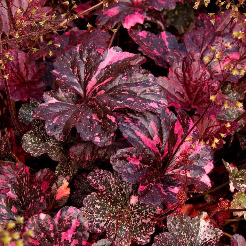 У гейхеры Миднайт Роуз – листва блестящая шоколадного цвета с розово-малиновым крапом, который к осени становиться больше и ярче. Цветочки мелкие, бледно-розовые собраны в метельчатые соцветия на длинных цветоносах до 35см. Цветение в июне-июле.