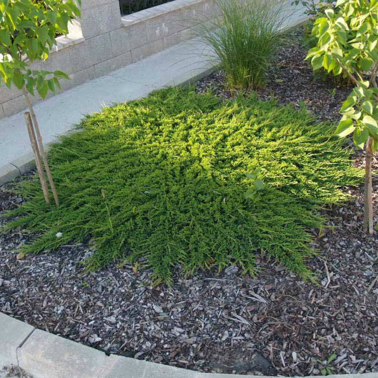 Растение не имеет центрального ствола. Побеги образуются у поверхности земли (их длина – около 1,5 м). Вначале создается впечатление, что каждая ветвь является обособленной. Однако по мере роста верхние побеги накрывают нижние, за счет чего образуется сплошной зеленый «ковер». Корневая система растения хорошо разветвленная. Корневой круг может составлять до 50 см.