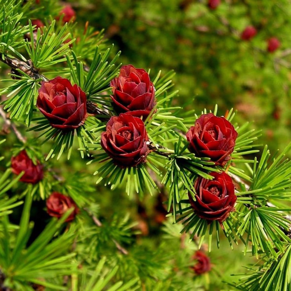 Крона молодых деревьев внешне напоминает конус, но со временем приобретает яйцеобразную форму. Хвоя мягкая на ощупь, ярко-зеленого оттенка, не слишком длинная. Лиственница является однодомным растением, то есть имеет одновременно и мужские (колоски), и женские (шишки) генеративные органы, при этом опыление начинается либо одновременно с распусканием хвои, либо сразу после этого. Шишки созревают осенью, но нередко раскрываются только с приходом весны.