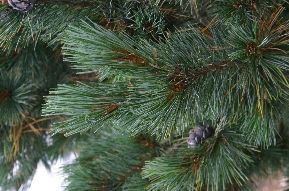 Хвоя имеет двойной окрас (внешняя часть — голубовато-зелёная, а внутренняя — бело-голубая); шишки овальной формы, светло-коричневого оттенка. Их длина достигает 8 см, а диаметр 5 см; длина хвои — 6 см; продолжительность жизни составляет 700–1000 лет.