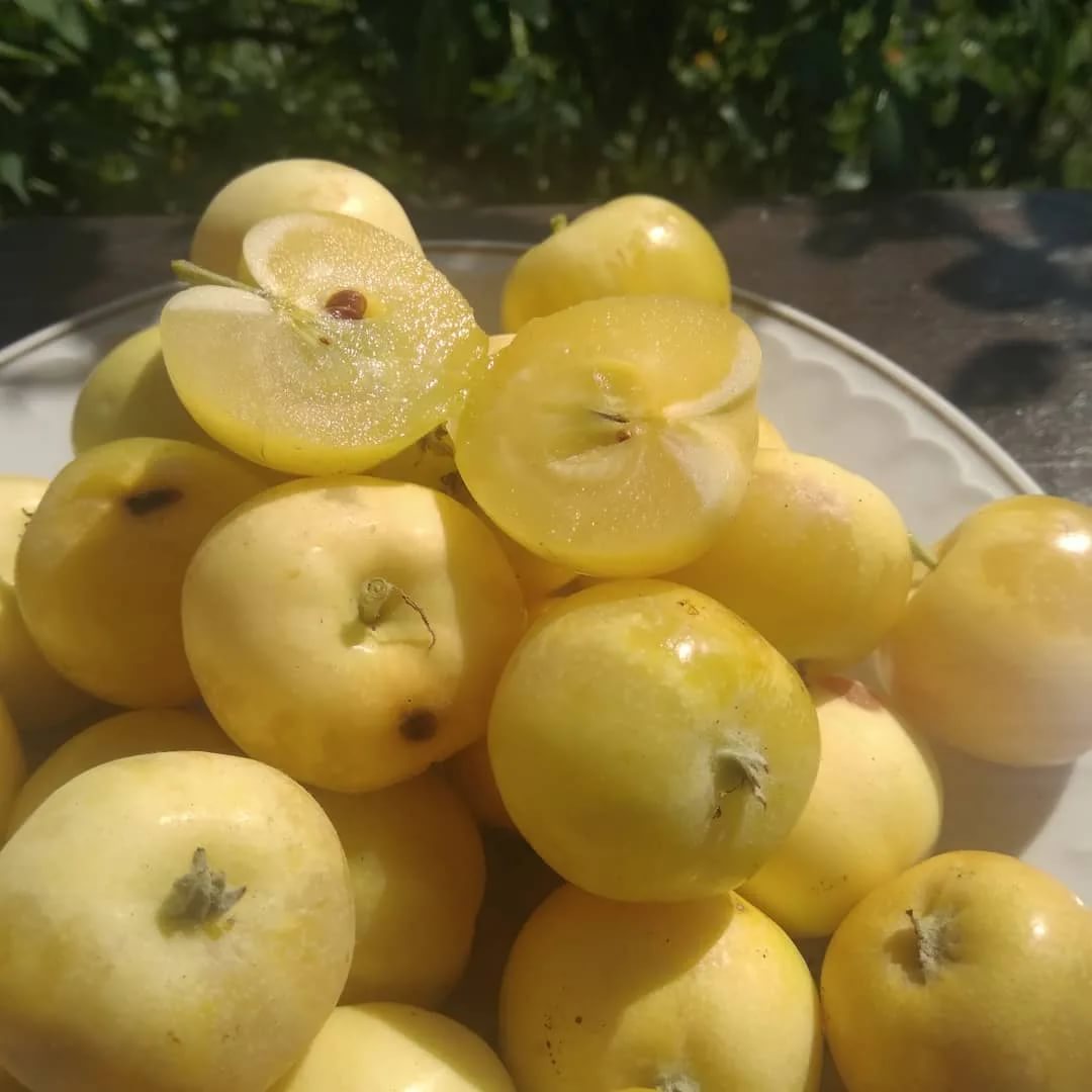 Ее небольшие наливные плоды кремово-желтого оттенка называют «райскими яблочками» за выраженный приятный аромат и сладкий вкус с едва уловимой кислинкой. Это дерево – изюминка любого сада или дачного участка: весной его ветви покрываются ароматным крупным белым цветом, а уже в конце июля они утопают в гроздьях наливных золотистых плодов, что обеспечивает декоративность растения на протяжении всего сезона.