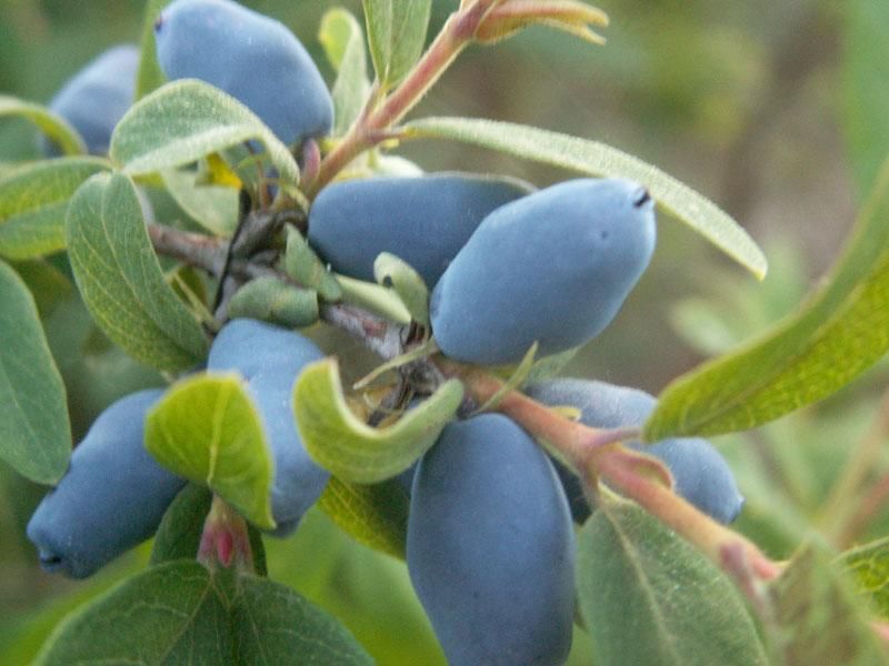 Плоды внешне похожи на чернику, небольшого размера, длиной 1,6 см. Масса до 0,5-1 г. Форма удлиненно-овальная, на вершине широкое «блюдце». Вкус сладко-кислый. Кожица тонкая. Осыпаемость средняя. Куст с обратноконической кроной и прямыми побегами. Для универсального использования.