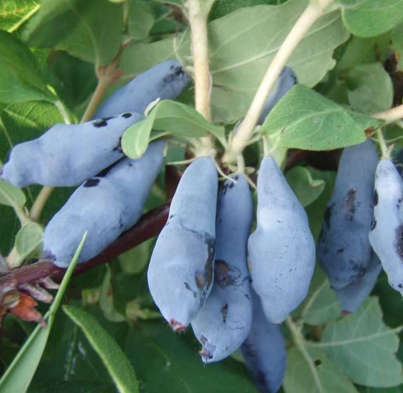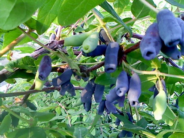 Куст жимолости Длинноплодная слаборослый, раскидистый. Сорт самобесплодный.